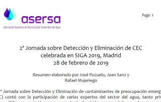La documentación elaborada durante la II Jornada sobre Detección y Eliminación de Contaminantes de Preocupación Emergente (CEC), organizada en el marco de la feria SIGA 2019, el 28 de febrero de 2019 en Madrid, con participación de ASERSA, pueden descargarse en el servidor de environetworking. Además de las presentaciones realizadas [...]