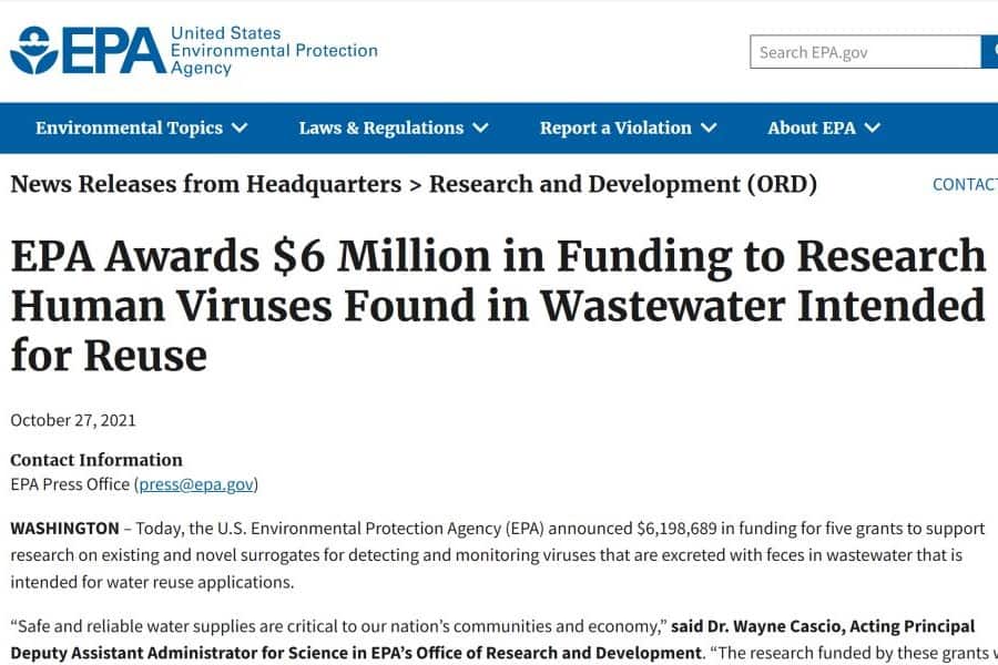 Ayuda de la USEPA para investigar la presencia de virus humanos en agua regenerada
