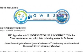 OCWD y OCSD establecen un record Guinness de regeneración de agua