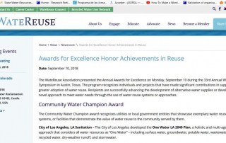 El pasado mes de septiembre, la WaterReuse Association otorgó los premios anuales a la excelencia en reutilización del agua, durante su reciente Simposio anual de reutilización celebrado en Dallas, Texas. El listado de premios muestra el reconocimiento a las personas y los proyectos que han hecho contribuciones significativas para impulsar una mayor adopción de la reutilización del agua. Los premiados han tenido un papel determinante en la promoción satisfactoria del desarrollo de fuentes alternativas de suministro de agua o de [...]