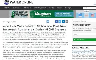 Premios a la planta de eliminación de PFAS en Yorba Linda
