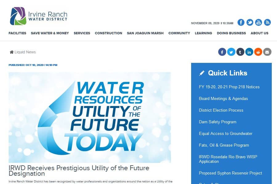 Empresa del Agua del Futuro en 2020: Irvine Ranch Water District