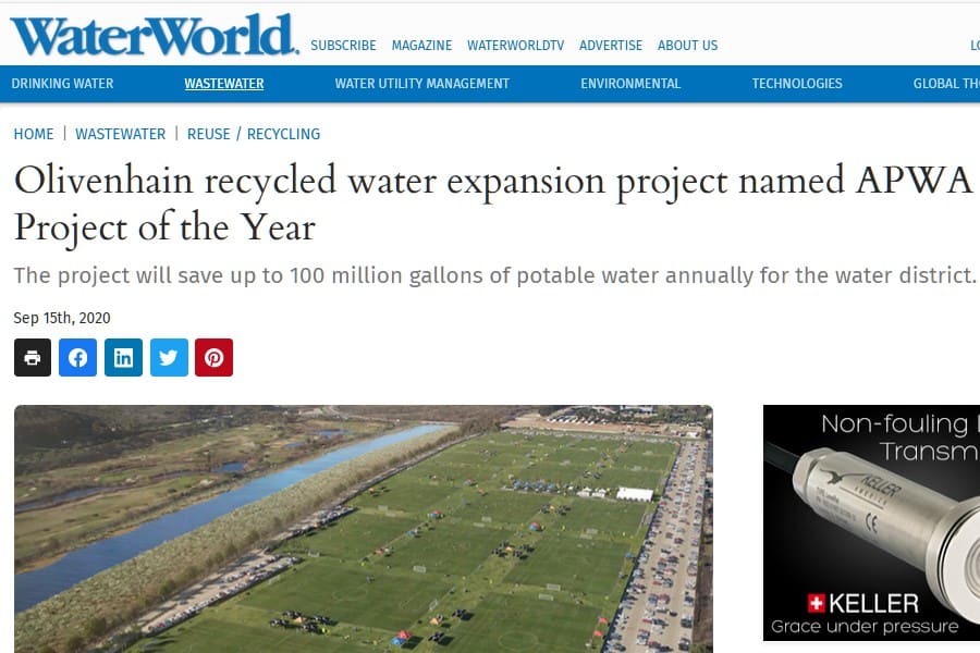Riego de jardinería con agua regenerada en Olivenhain: Proyecto del Año de la APWA