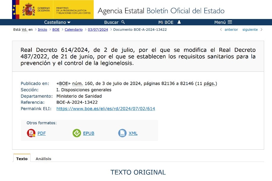 Requisitos sanitarios para la prevención y el control de la legionelosis