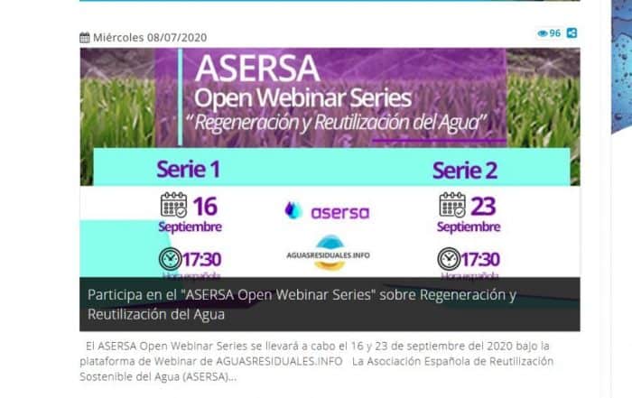 ASERSA promueve la reutilización del agua regenerada mediante la divulgación de conocimientos científicos y técnicos, proyectos emblemáticos, modelos de gestión y normativas de protección sanitaria y ambiental