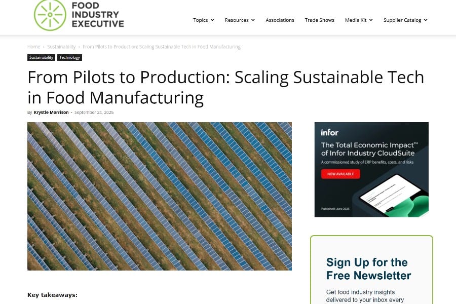 El 24 de septiembre, el portal Food Industry Executive publicó el artículo titulado “De la escala piloto hasta la de producción: escalando la tecnología sostenible en la producción de [...]